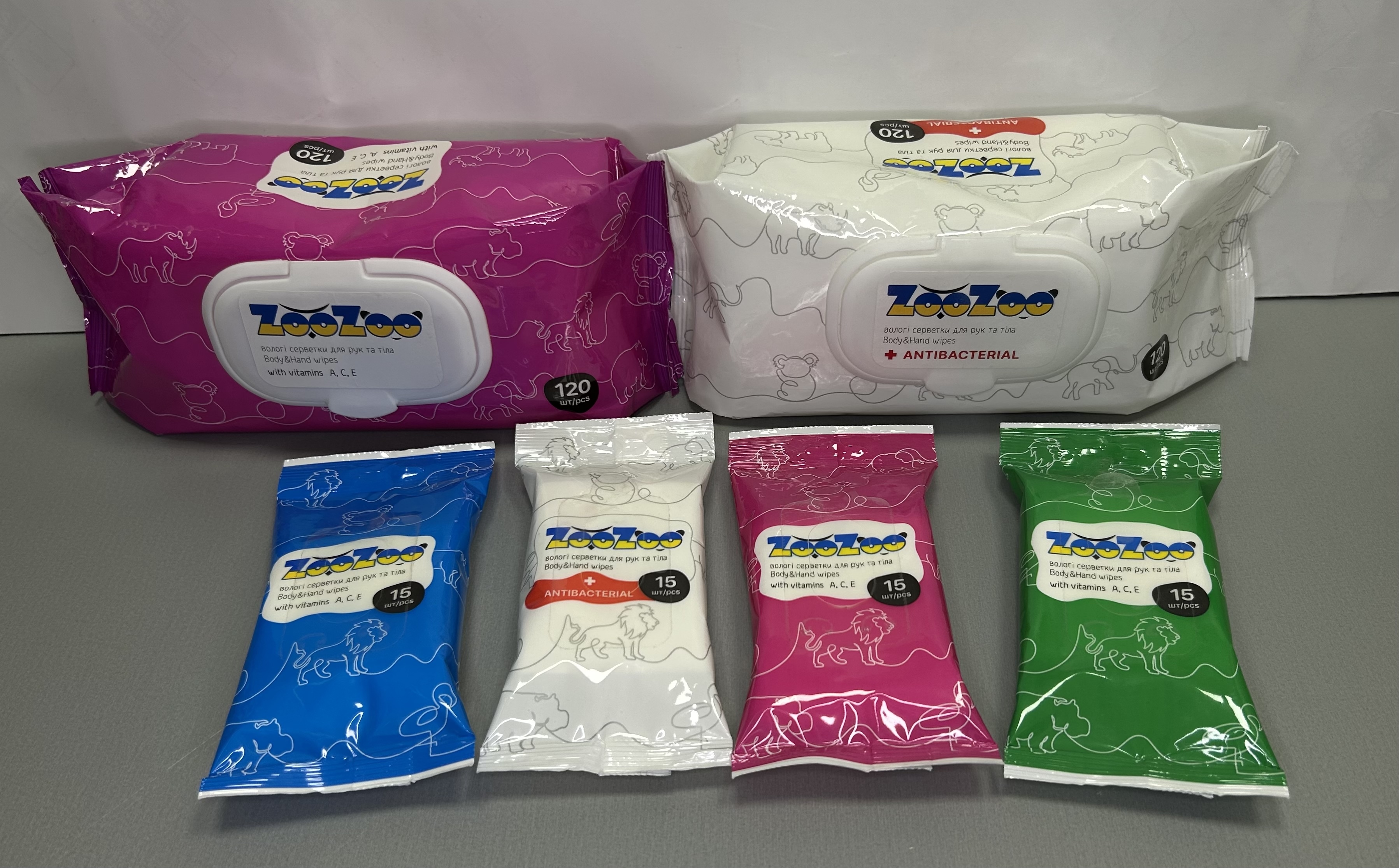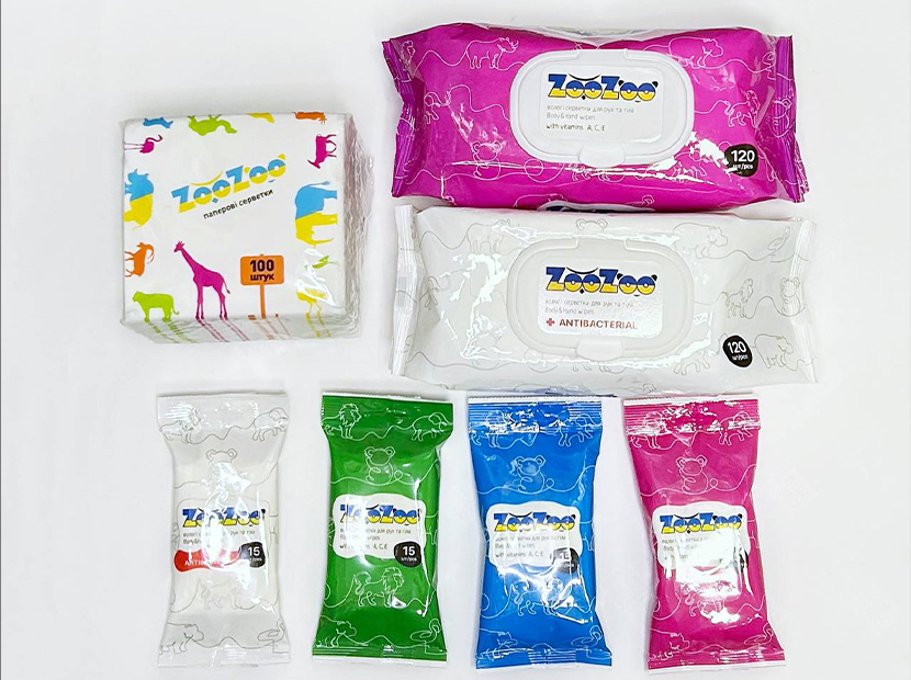 У асортименті ZooZoo представлені одношарові паперові серветки для столу та особистої гігієни, які забезпечують комфорт і зручність. Вологі серветки, представлені в асортименті, підходять для рук і тіла та відзначаються збагаченням вітамінами, що забезпечує додатковий догляд за шкірою.